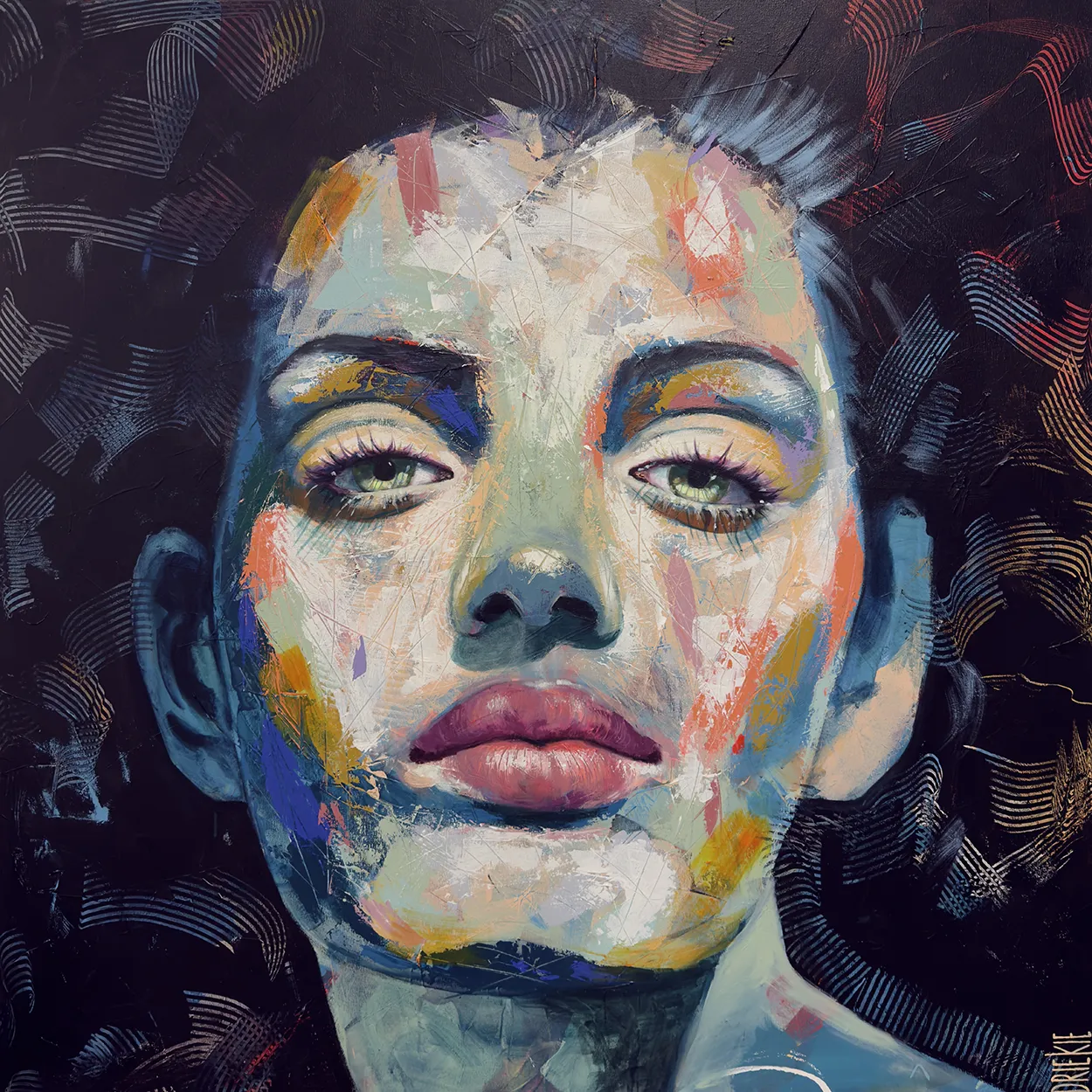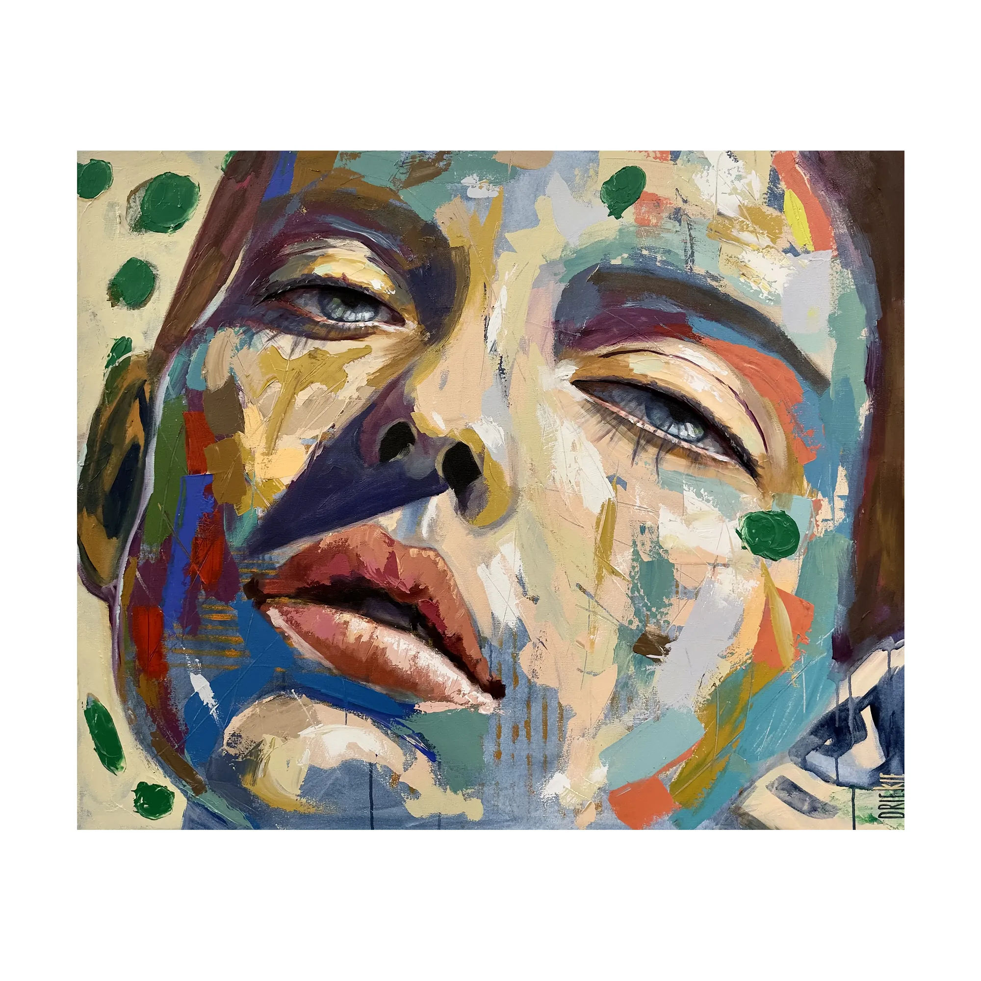 Inspired by the notion that each individual harbors entire galaxies within them, Driekie’s art is a celebration of the interconnectedness of humanity. She believes that when we gaze into someone else’s eyes, our worlds collide, fostering a deeper understanding of one another. This belief is vividly reflected in her work, where the eyes of her subjects always meet the viewer’s gaze, regardless of their position in the room.